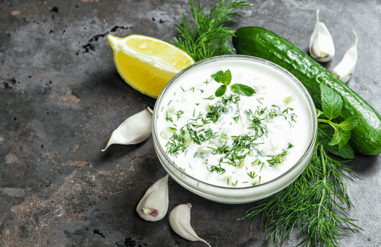 Le sue origini risalgono all’antico impero ottomano, diffondendosi poi in Grecia come salsa a base di yogurt colato, cetriolo e aglio.
